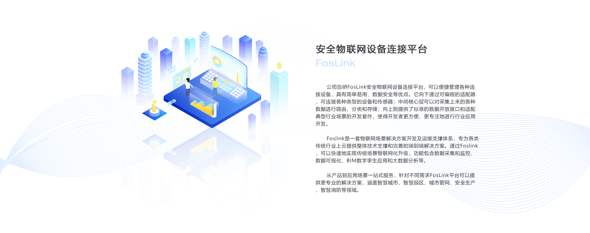 Foslink是一套物聯網場景解決方案開發(fā)及運維支撐體系,專為各類傳統行業(yè)上云提供整體技術支撐和完善的端到端解決方案。通過Foslink,可以快速地實現傳統場景物聯網化升級,功能包含數據采集和監(jiān)控、數據可視化、BIM數字孿生應用和大數據分析等。